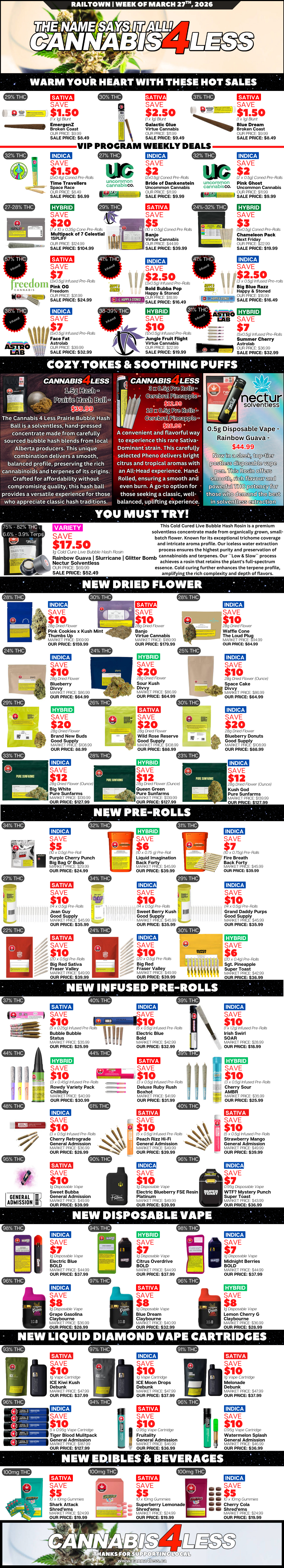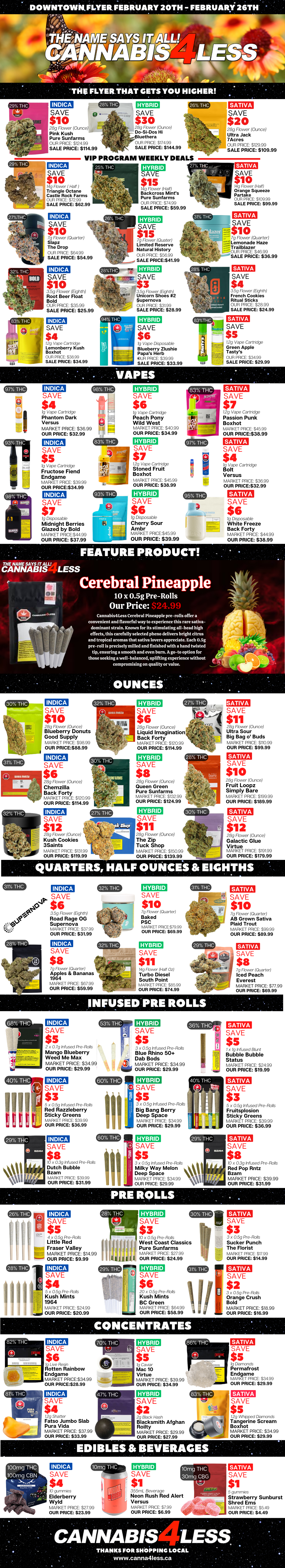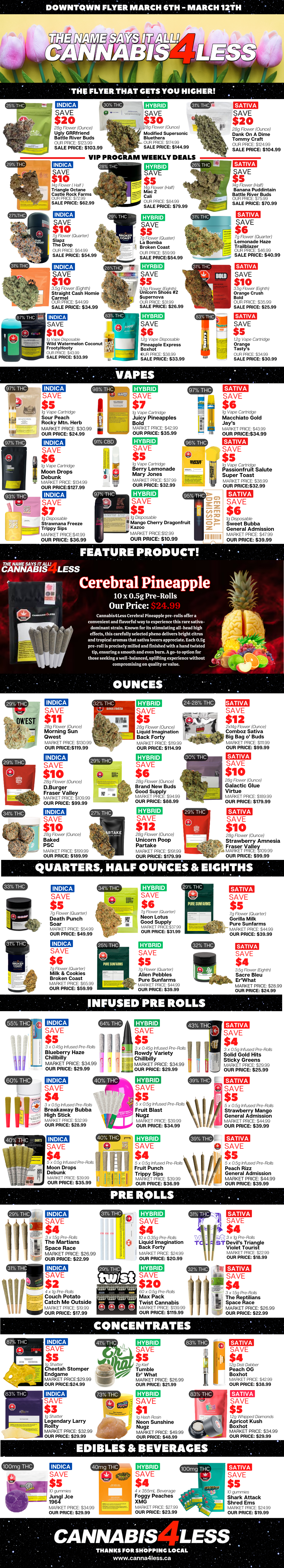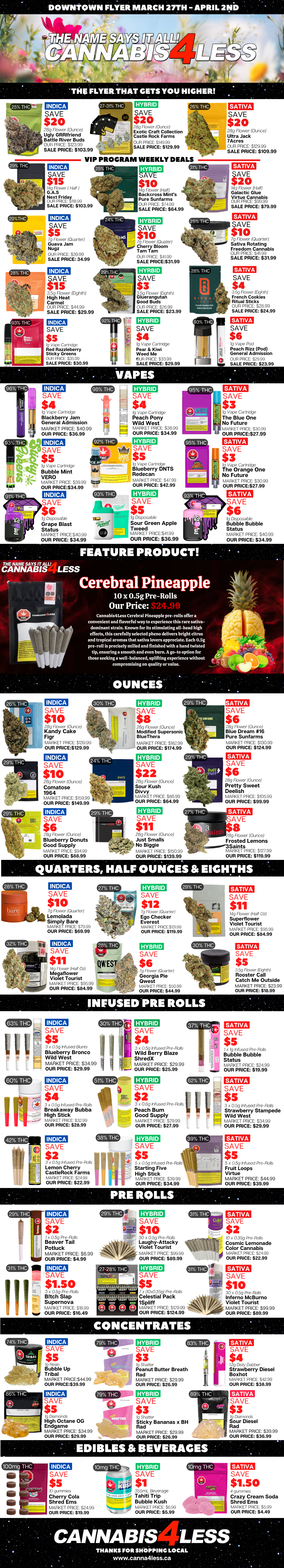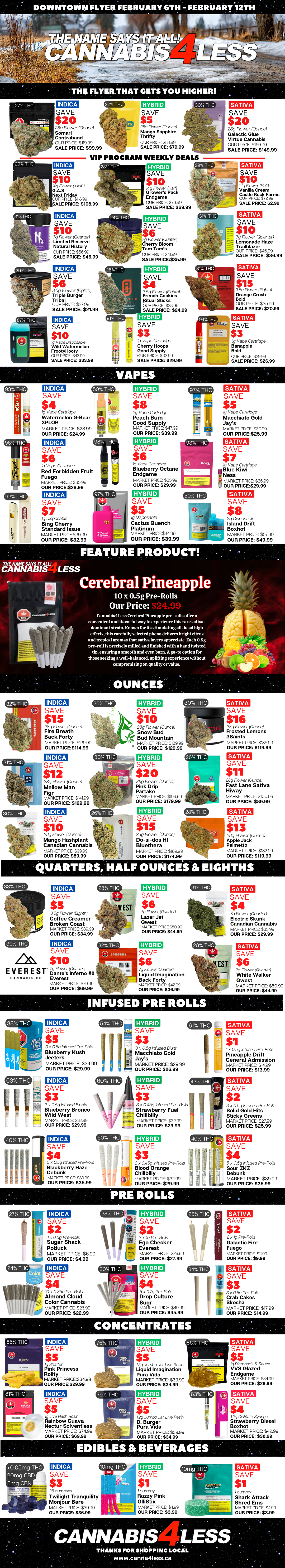 Our weekly flyer provides you with the best cannabis for the lowest prices possible.