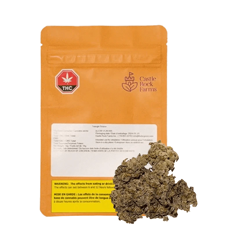 Triangle Octane is an Indica-dominant hybrid made from a genetic cross between High Octane x Triangle Kush. This potent, sweet, gassy flower displays purple and green colouring with a heavy layer of trichomes. Bred by Seed Junky Genetics, Triangle Octane features flavors of earthy lemon, and pine.