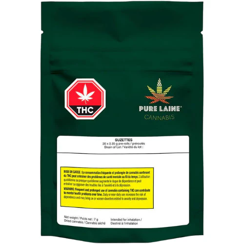 Perfectly spun-up every time, Suzettes load smooth-burning consistency into each pack of pre-rolls for your convenience. With a shorter filter, even shape, and slimmer profile these slick numbers have a predictably even burn. Pure Laine's high-potency whole flower is expertly ground to an ideal, homestyle texture then hand-filled into each pre-roll to keep things fresh. Check out our rotating blended strains with each new drop from Suzettes.