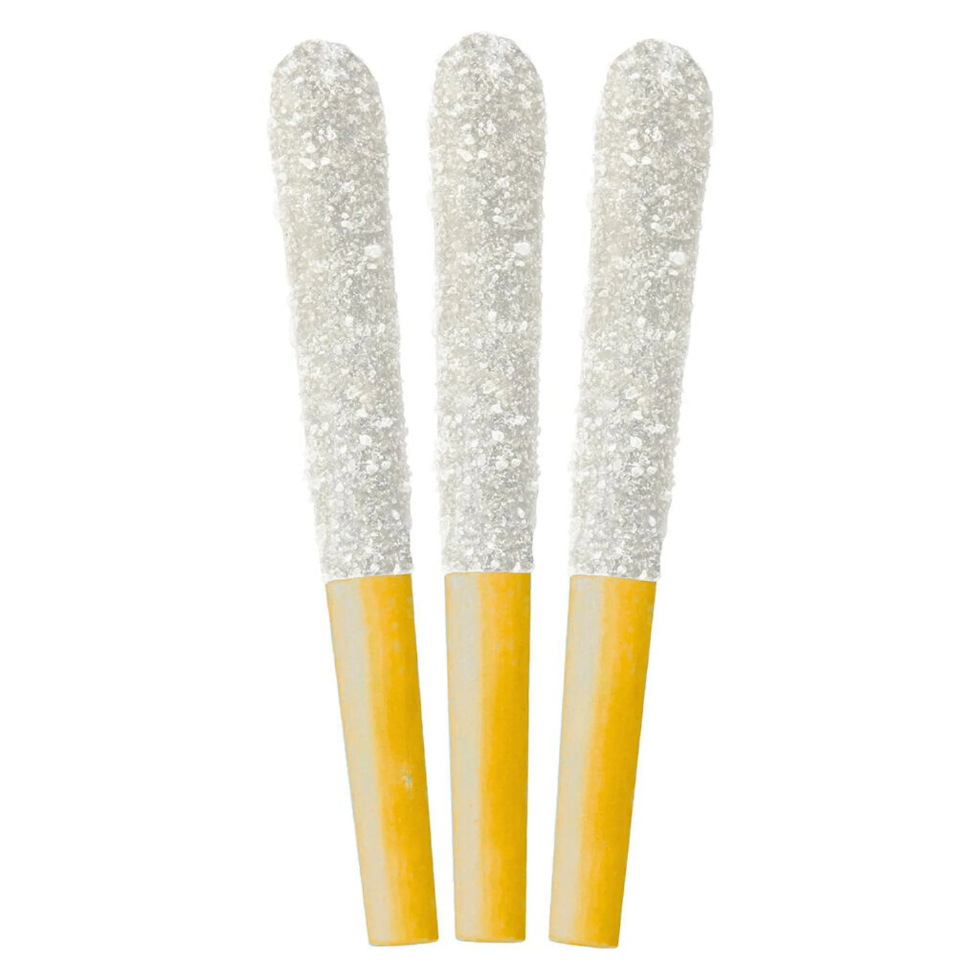 Big flavor. Bigger potency. Peach Lemonade 'Berta Crafted Triple Diamond Infused Pre-Rolls take high THC to the next level with a 60-65% THC punch, combining liquid diamonds, diamond shards, and a crushed diamond coating for an ultra-potent, terpene-rich experience. Each pre-roll is packed with smooth, sun-ripened peach and zesty lemonade flavors, delivering a sweet, citrusy blast with every pull.