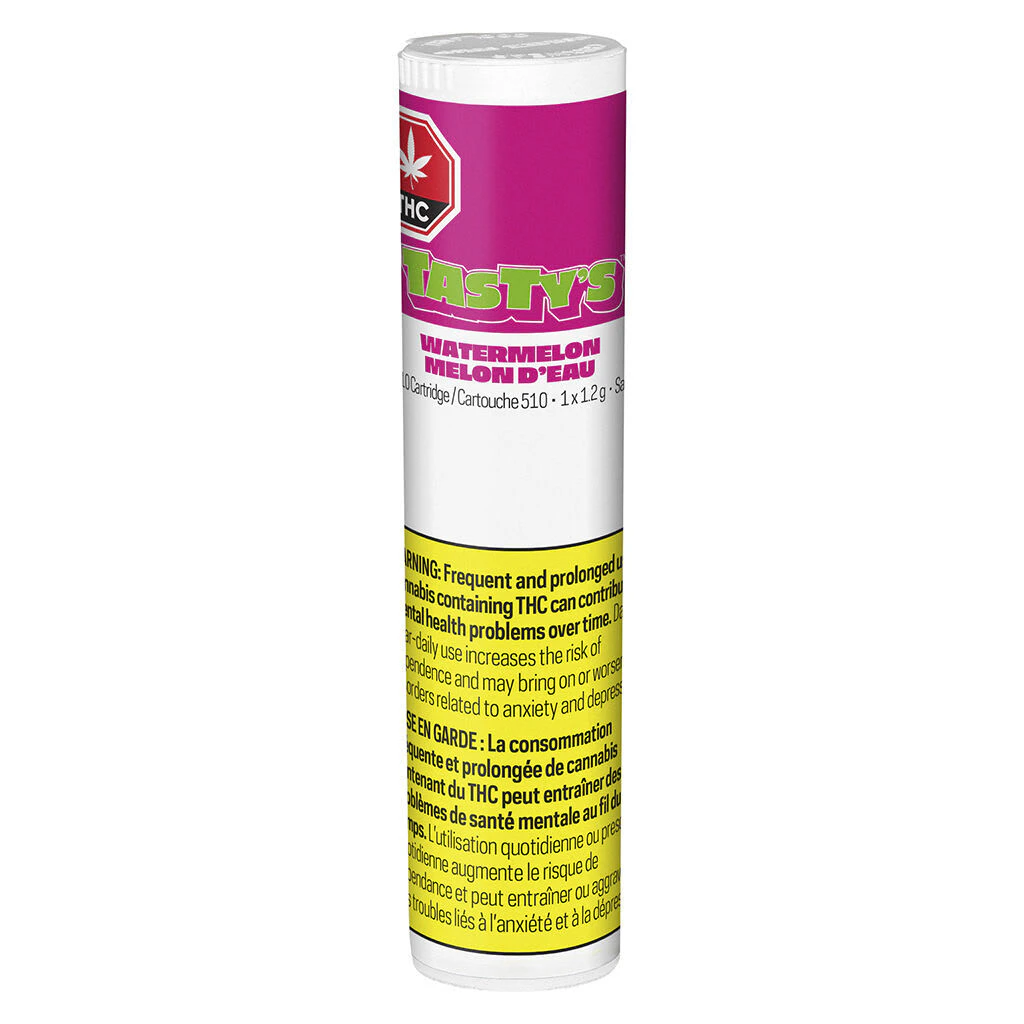 Tasty's Watermelon 510 Vape offers an unbeatable combination of taste and THC that won't break the bank. Perfect for the long haul, Watermelon 510 Vape arrives in a giant 1.2-gram cartridge, offering ripe and refreshing melon flavours enhanced by botanical terpenes with hints of lime, syrup, and sweet mint. Thanks to its super-wide 2mm aperture, you'll enjoy taking massive draws and ripping huge clouds. It's the oversized, underpriced experience your tastebuds have been craving.