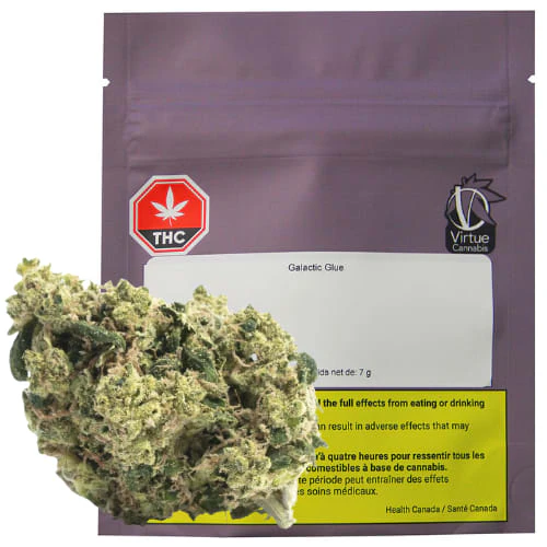 At Cannabis 4 Less try Virtue's Galactic Glue. High in THC, Galactic Glue benefits further from the entourage effect. With high b-myrcene, b-caryophyllene and pinene. This strain consistently delivers 3 - 4% terpenes. Galactic Glue gives chunky, resin covered buds, and a pungent earthy-sour aroma.