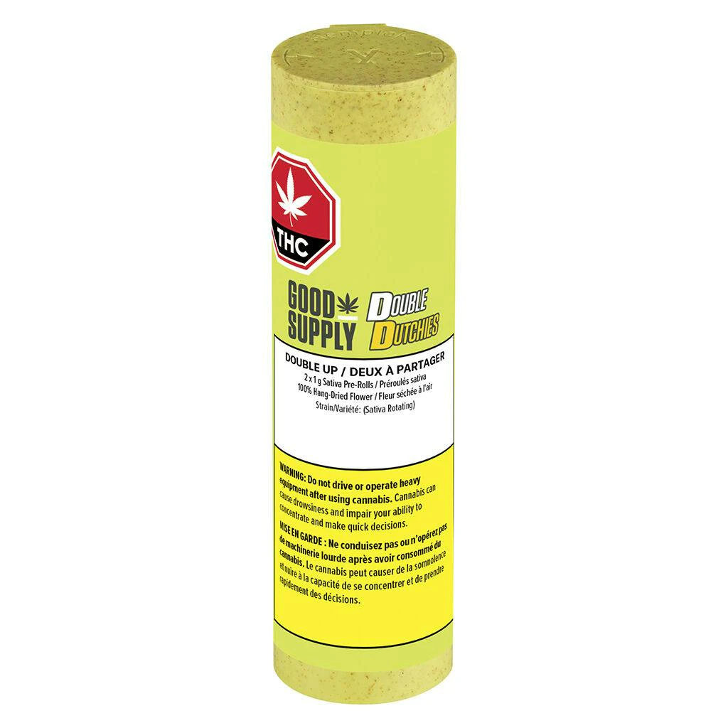 What's better than a 1g pre-roll? Two 1g pre-rolls, duh! We've got you covered with Double Up Rotating Sativa Pre-Rolls that slap so hard it's like getting a double high-five from the sun. They bring you the uplifting fun of rotating two-pack of 1g sativa pre-rolls with citrus flavours. Always fresh, never boring. What's inside? Check the label. Like a surprise mixtape, but it's actually full of bangers. Made with 100% hang-dried, milled whole flower, these pre-rolls are levelled up with a Dutch fold, tighter roll and better burn. Make double trouble with these Double Dutchies.
