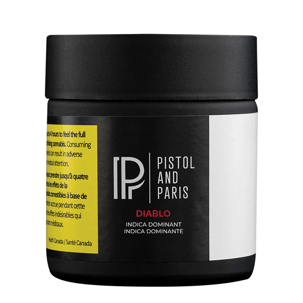 The enigmatic Diablo flower carries an air of mystery, with its origins believed to be a cross between MKU and Bubba Kush. Upon opening the bag, you'll be greeted by intense, eye-watering waves of peppery diesel that signal the strain's potent nature. The smoke follows suit, offering a spicy, gassy flavour that tingles the throat with each hit. Diablo acts fast, quickly inducing heavy, droopy eyes and a deeply relaxing full-body effect that settles in with ease. The buds themselves are sticky and dense, with a medium green hue and a thick coating of resinous trichomes.