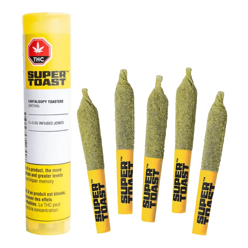 Crank up the toast level with Toasters. Super flavourful and potent kief-coated joints infused with THC distillate and juicy swirls of sweet creamy cantaloupe. Super Toast. Always Ready.