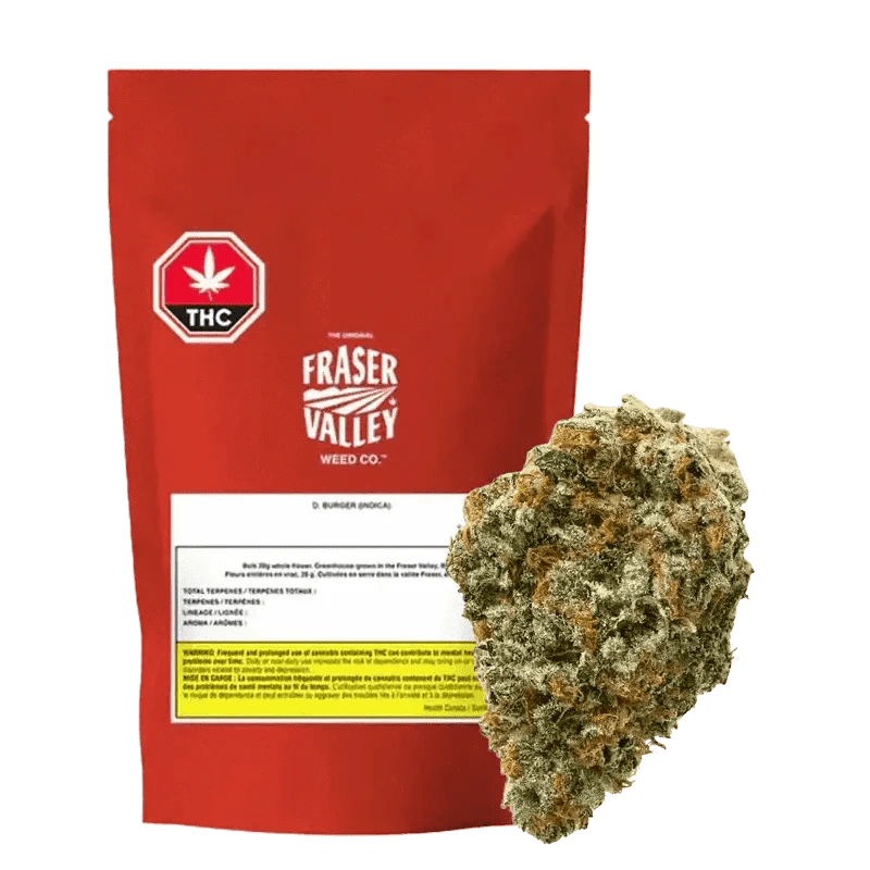 Like a backyard BBQ with some extra gas for good measure. Donny Burger is gassy, pungent, and deliciously savoury -- think grilled cheese and dark garlic in a bulk bag. This high-quality hybrid THC strain is a cross of GMO and Han Solo Burger. An ounce of dense green buds with tufts of orange pistils, our Donny Burger's unmistakable bud is hand-harvested in BC's best growing region, the Fraser Valley.