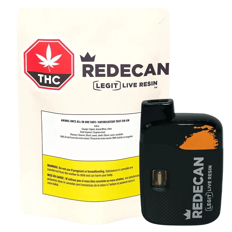 Working description: Introducing Redecan Legit Live Resin All-in-One Vapes! 28g of fresh frozen Redecan flower goes into every device. Now available in Animal Rntz and Purple Churro